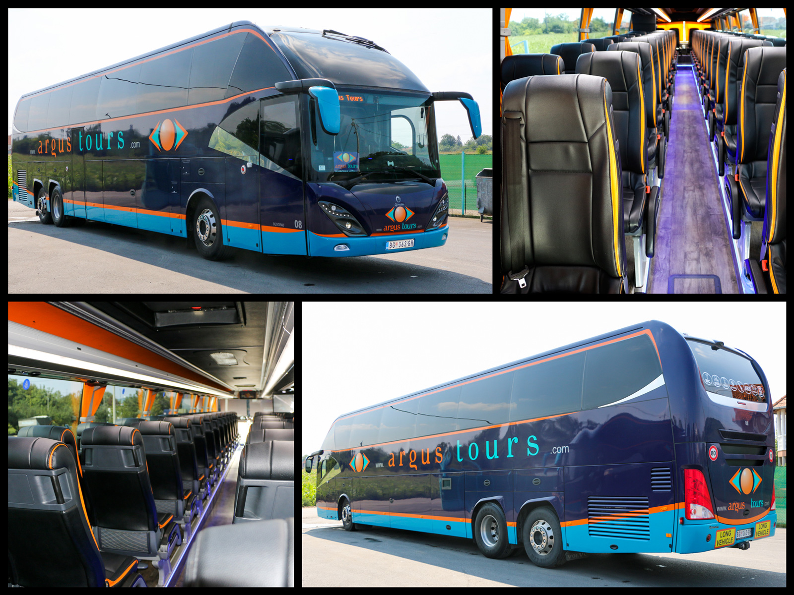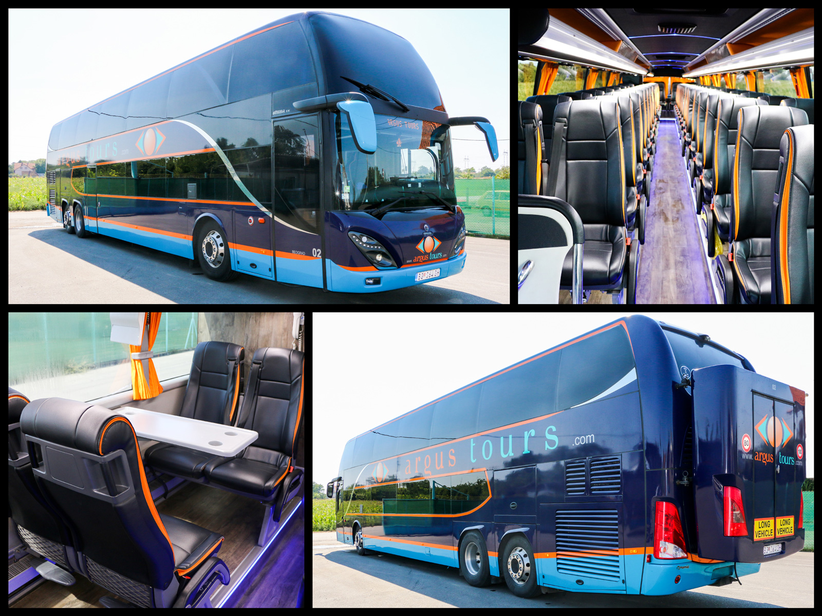Argus Tours Vam nudi iznajmljivanje najudobnijih turističkih autobusa, jednospratnih i dvospratnih, za putovanja po želji. Autobusi su novi, uredni i spremni za polazak - javite nam se što pre!