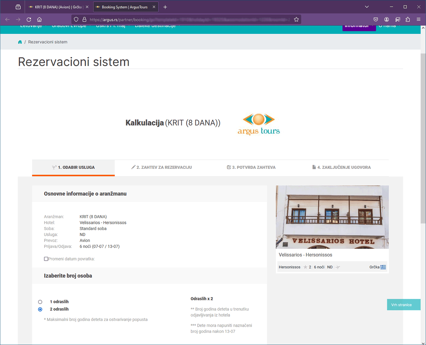 U prvom koraku birate broj osoba koje putuju (odrasli i deca), nakon čega klikom na dugme Dalje prelazite na sledeći korak.
